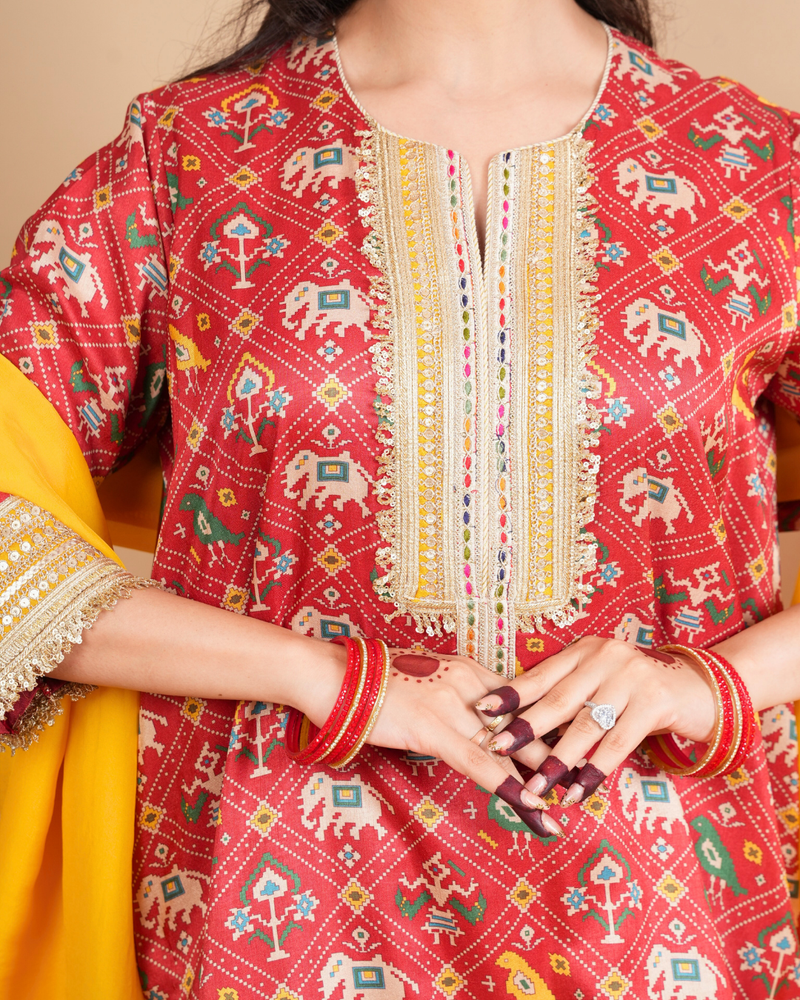 The Banno print is eye-catching. Soft cotton, but the dupatta is thin. Good for festivals.