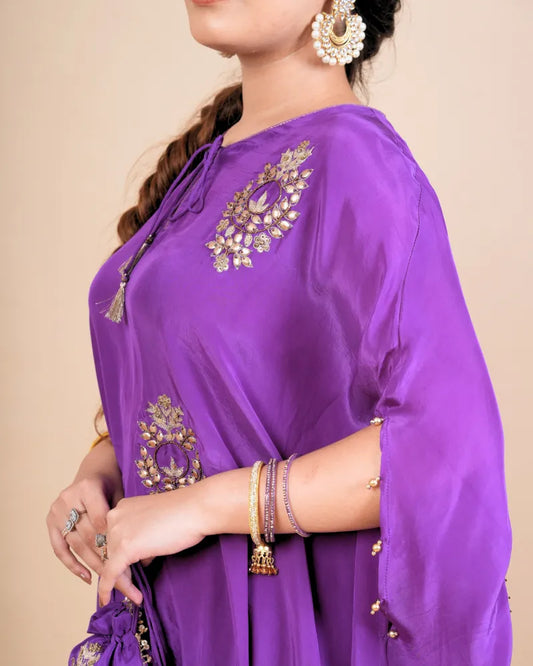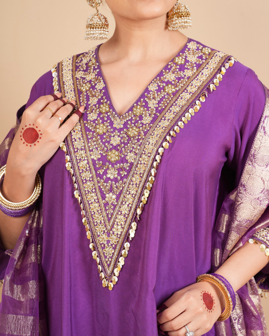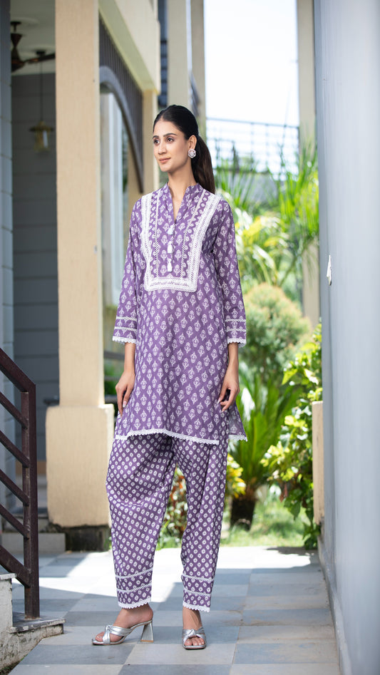 Riya Mauve Cotton Kurta Set – Mandarin Collar, 3/4 Sleeves
