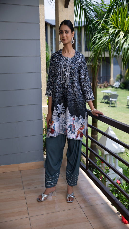 Saanvi Ash Grey Cotton Kurta Set – Mandarin Collar, 3/4 Sleeves