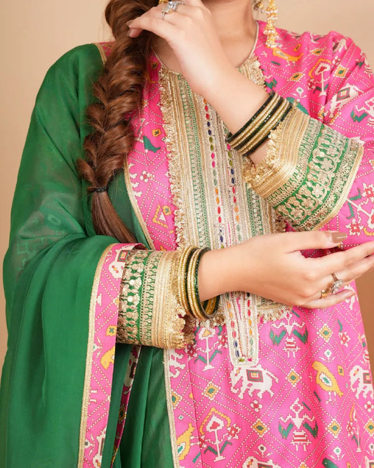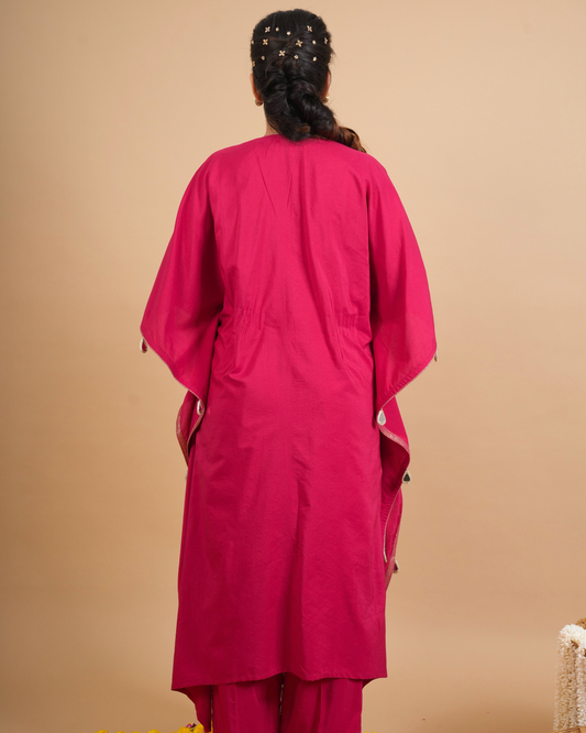 Noor Pink Cotton Linen Kurta Set – Bell Sleeves, Elegant Everyday Wear