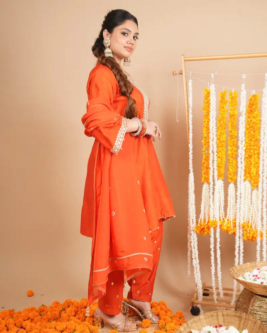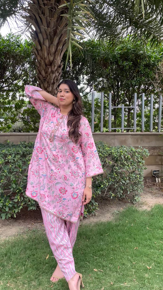 Meera Pink Cotton Kurta Set – V Neck, 3/4 Sleeves