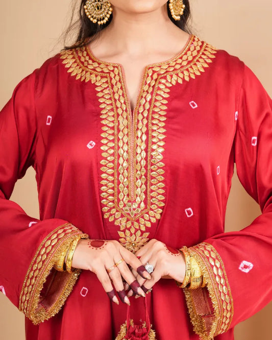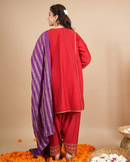 Anaya Red Cotton Linen Co-ord Set – Shirt Collar, Dropshoulder 3/4 Sleeves