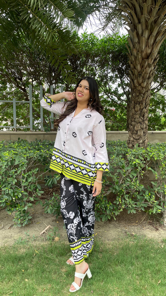 Ruhani Cotton Linen Co-ord Set – Shirt Collar, Cuffed 3/4 Sleeves