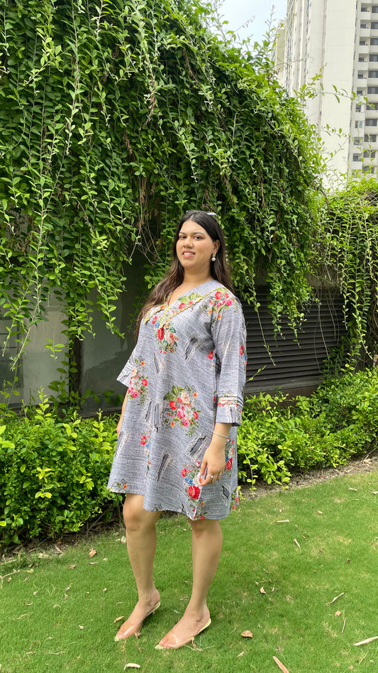Reeva Grey Cotton Linen Co-ord Set – Shirt Collar, 3/4 Cuff Sleeves