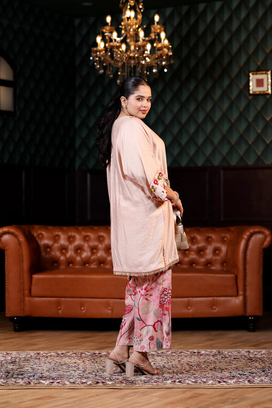 Scalloped Elegance Cotton Denium Co-Ord with Shoulder Cut Work