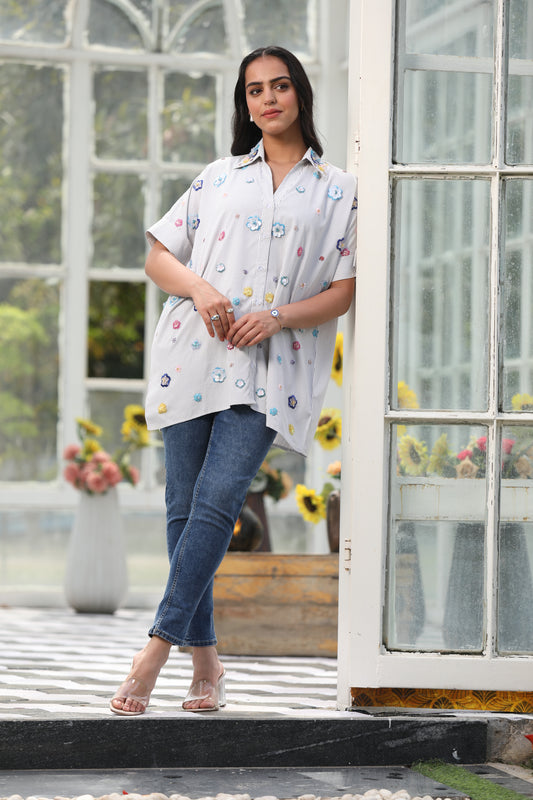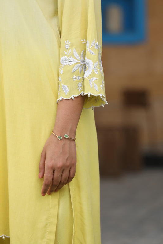 Parsi Bloom Ombre Kurta with Scalloped Hem and Tulip Pants