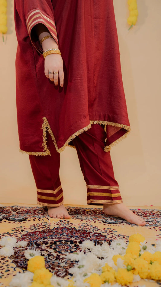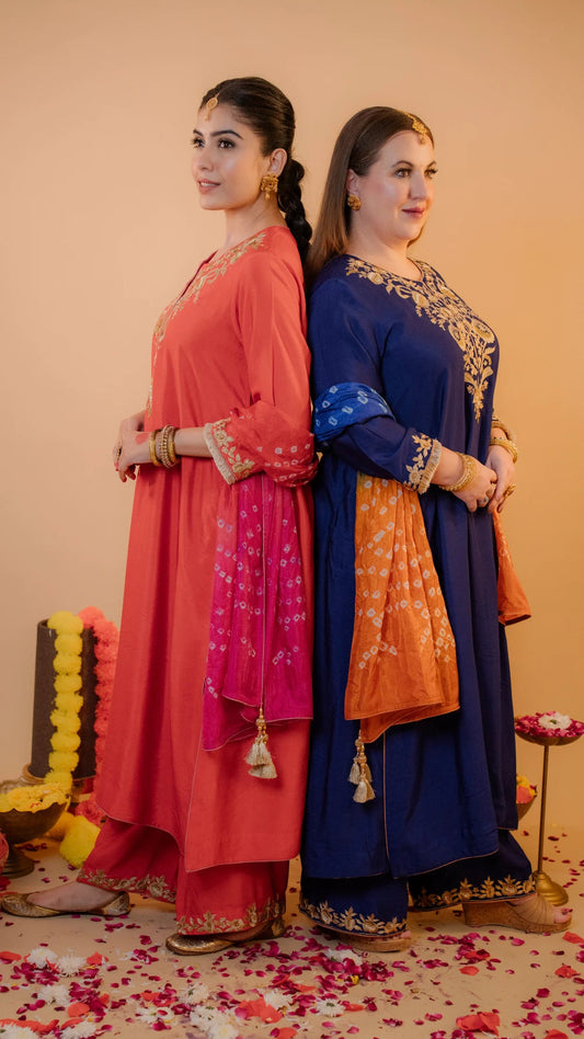 Parsi Bloom Ombre Kurta with Scalloped Hem and Tulip Pants