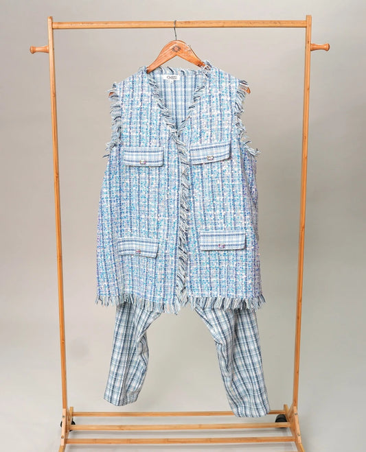 Sequin Waist Jacket & Tweed Pants: Elegant Two-Piece Tweed Coord