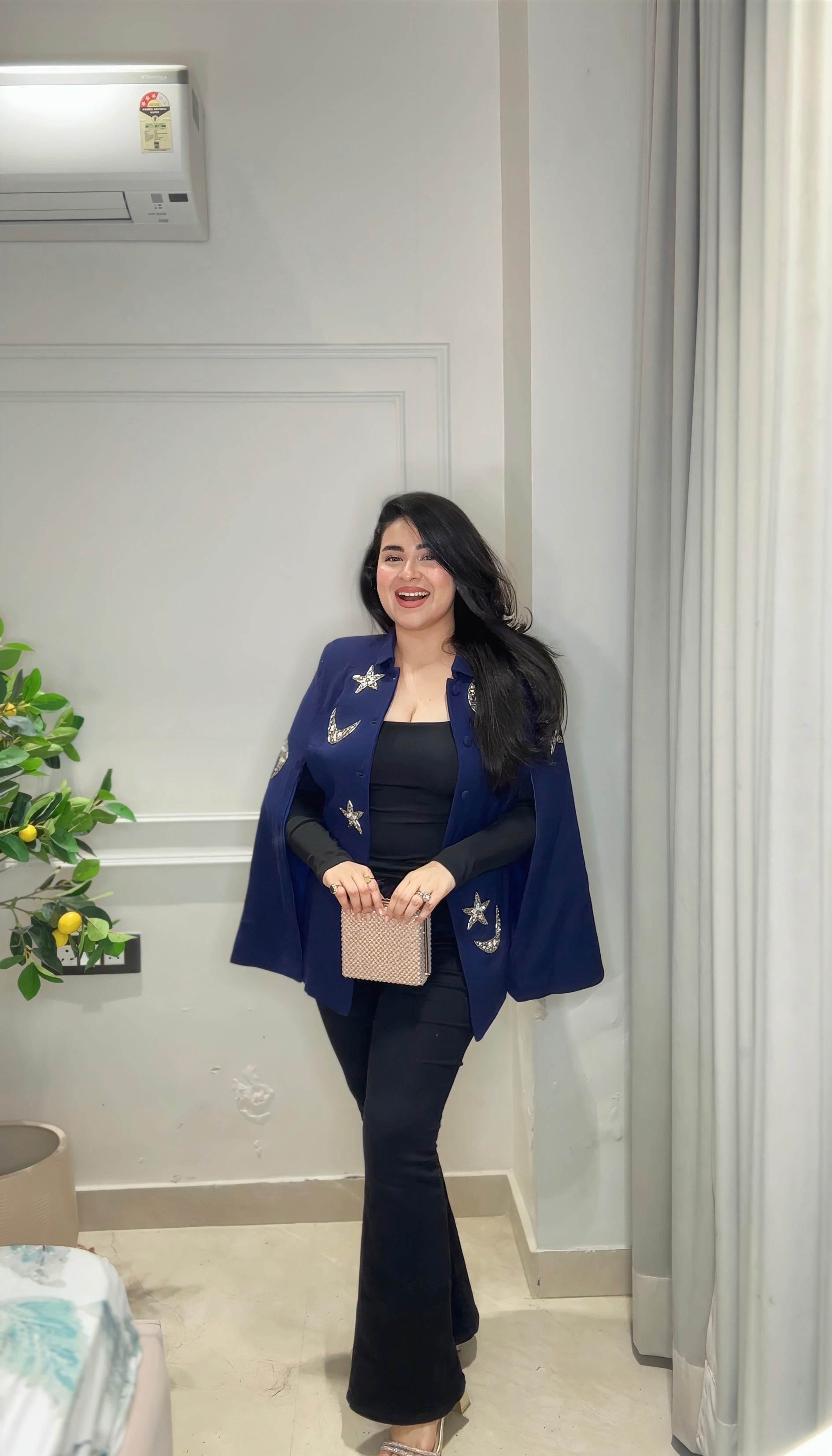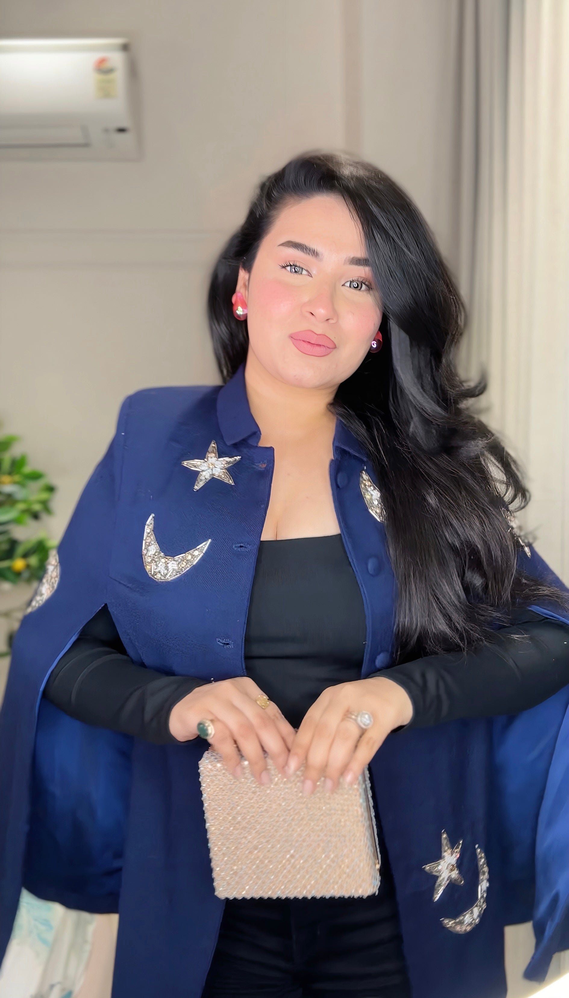 The Moon & Star Serenade Cape Coat is a statement piece that brings the magic of the night sky to your wardrobe. Featuring intricate celestial embroidery of moons and stars, this elegant cape coat offers a blend of comfort, style, and mystique. Its flowy silhouette and soft fabric make it perfect for layering over both casual and formal outfits, adding a touch of glamour to any ensemble.
