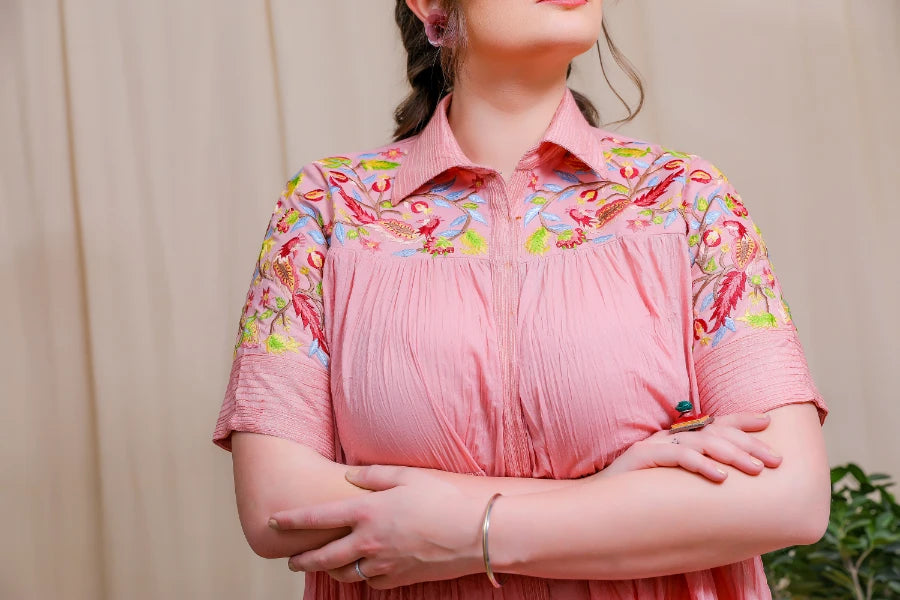 Akriti Gulati offers plus-size ethnic and fusion wear, including categories such as dresses, kurta sets, shirts, coord sets, tunics, kaftans, Indo-Western pieces, and seasonal collections like winter coats and capes.