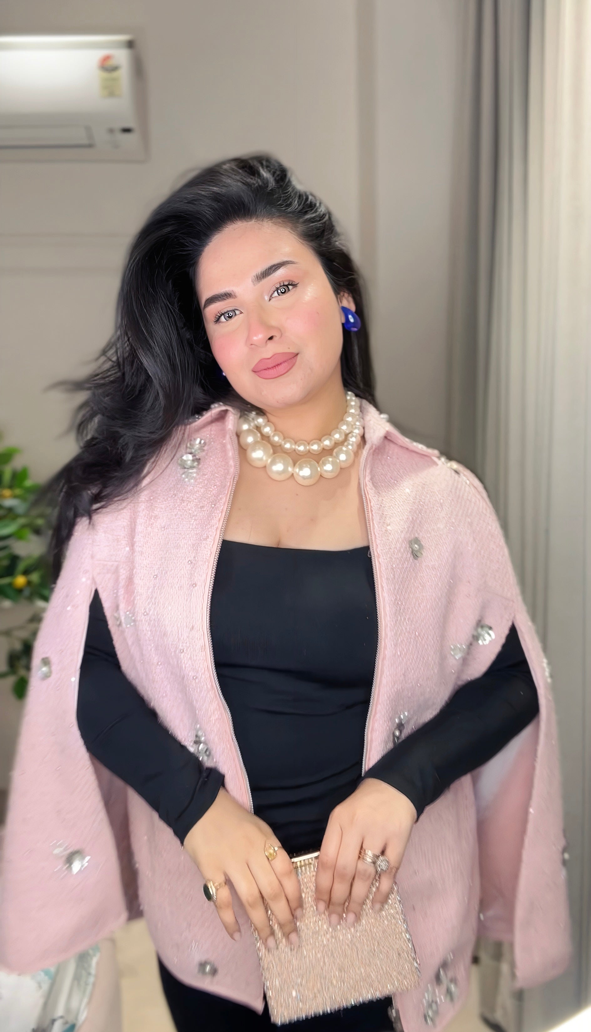 Elevate your winter look with this elegant pink winter shrug, featuring delicate pearl and sequin embellishments. Made from premium warm fabric, it offers comfort and style for parties, festive occasions, and evening outings. The open-front design makes it easy to layer over dresses or tops for a chic, classy look.